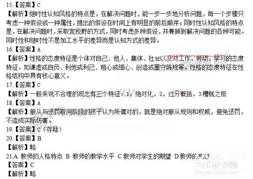 15、初中生晓敏在解决问题时,习惯于一步一步分析问题,每步只考虑一种假设或一种属性。提出的假设在时间上有明显的先后顺序,晓敏的认识方式属于()。
